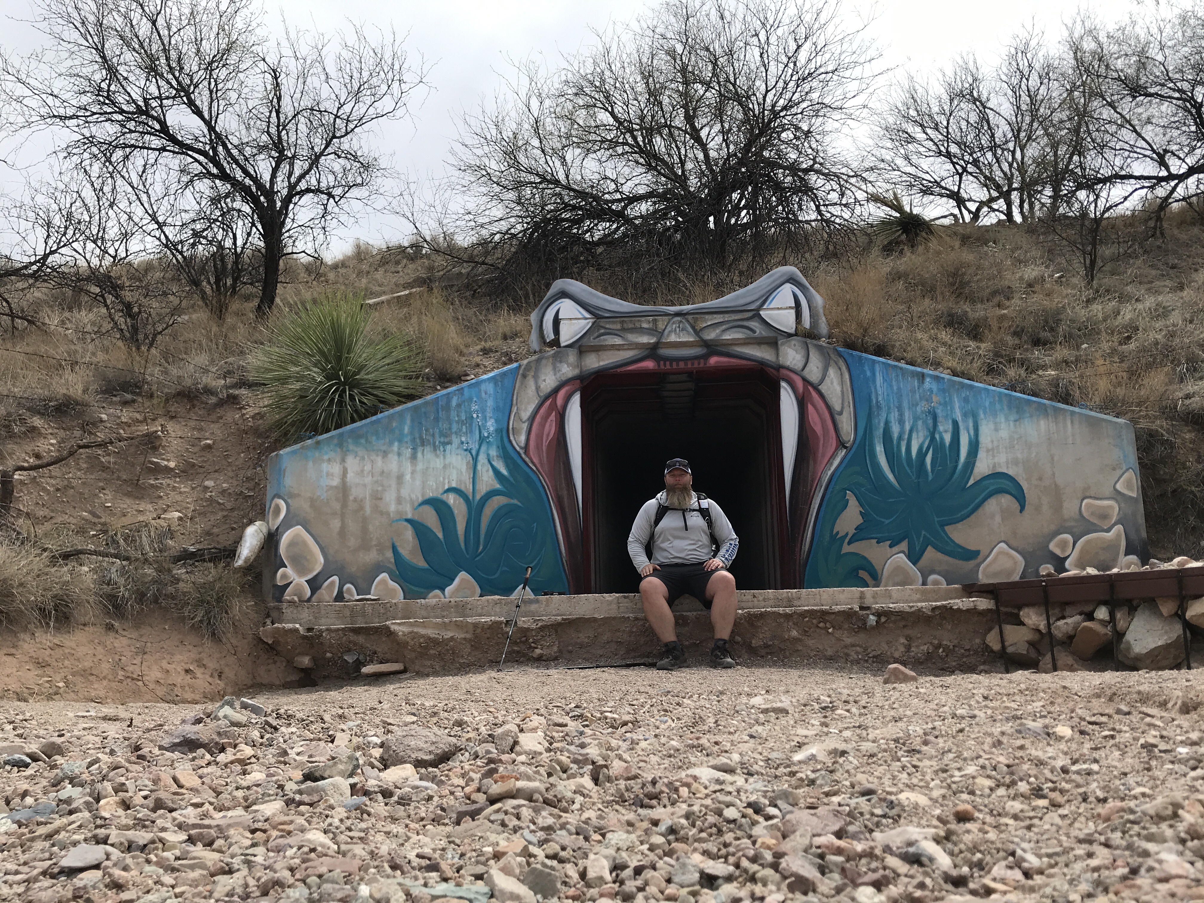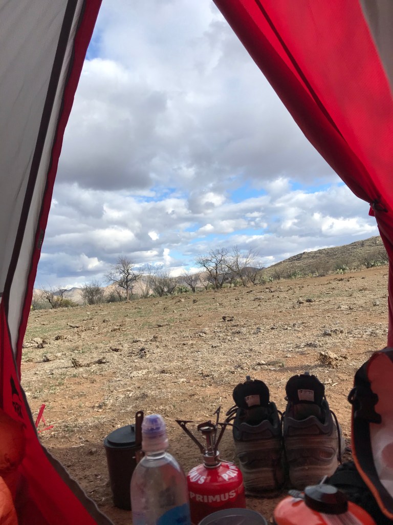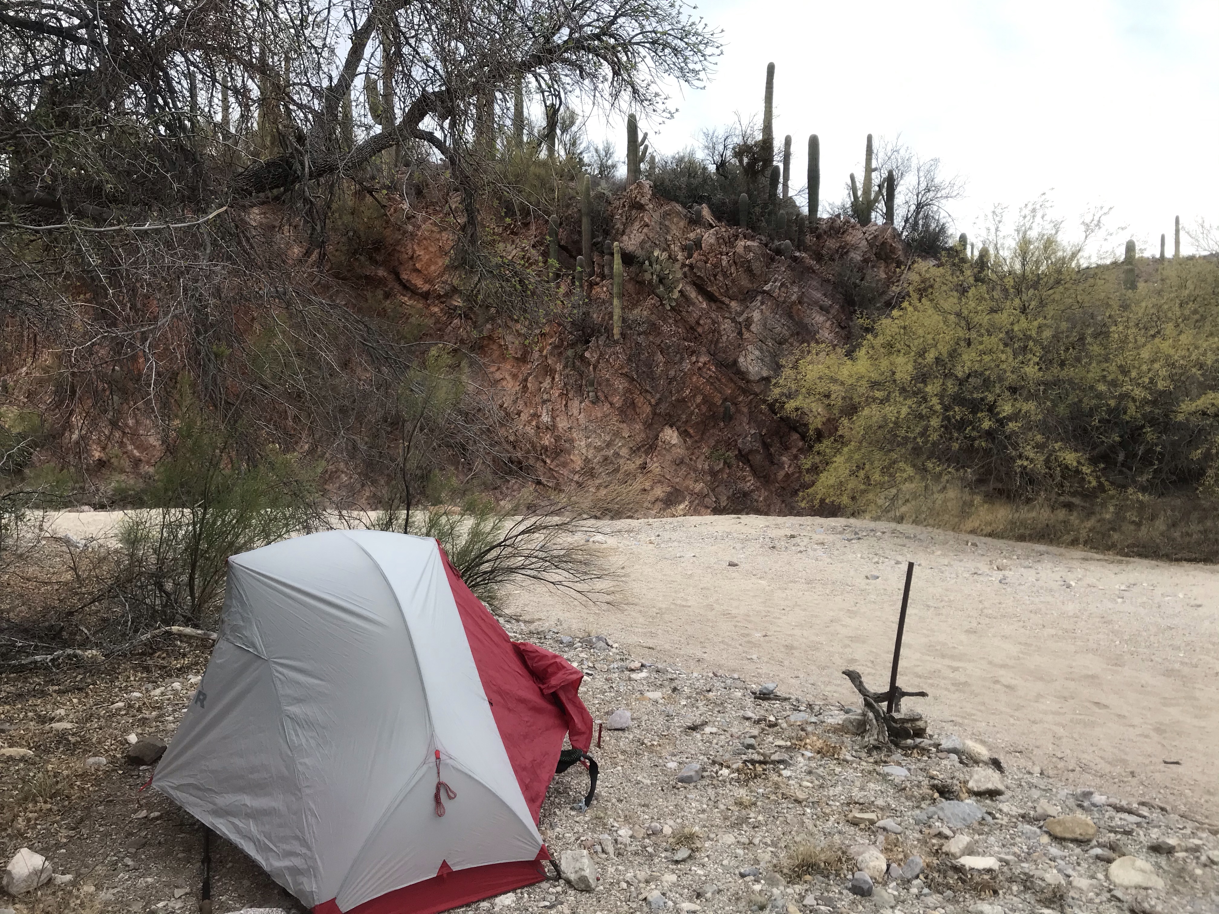 Day 9 was filled with cool things to see. Just after Gabe Zimmerman TH the trail descends into Cienega creek. This little oasis in the desert was a real gem. Anytime you find running water along the AZT it is reason to break out your water filter and take a hydration break. Climbing out of the small canyon I was greeted by the first Saguaros of the trip. It had taken 100 plus miles of hiking to reach the first Saguaro, and to me it felt like entering a new zone, a milestone worth celebrating. I’d made it to saguaro country! I set up camp in a wash close to Colossal Cave, so that I’d have a short hike to coffee the following morning.