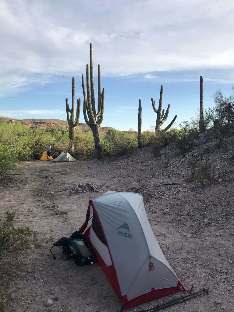 Upon arriving at Roosevelt I went straight to the restaurant and enjoyed a burger with several Dr. Peppers. It is always interesting how every trip, I develop some new/specific craving. For the AZT that craving was Dr. Pepper. After my meal I picked up my resupply box and a few treats from the convenience store. Contrary to what I’d heard/read the folks at Lake Roosevelt were kind and welcoming. They’ve even provided a space across the parking lot from the store where hikers can relax. There are picnic tables, and a little shed with a hiker box and a charging station. Thanks!